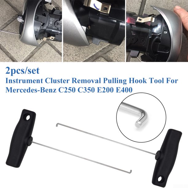 Mercedes benz instrument cluster removal tool 2 piece set mercedes benz 140589023300. Removal can be done using special tool (some do use modified coat hangers). Yes i want to make my own tool, but need the dimentions for the mb tool so i can make a set that is the same or very close to mb tool. It has the radio keys and the cluster removal hooks. Due the weak/plastic gears in instrument cluster all w126 owners.